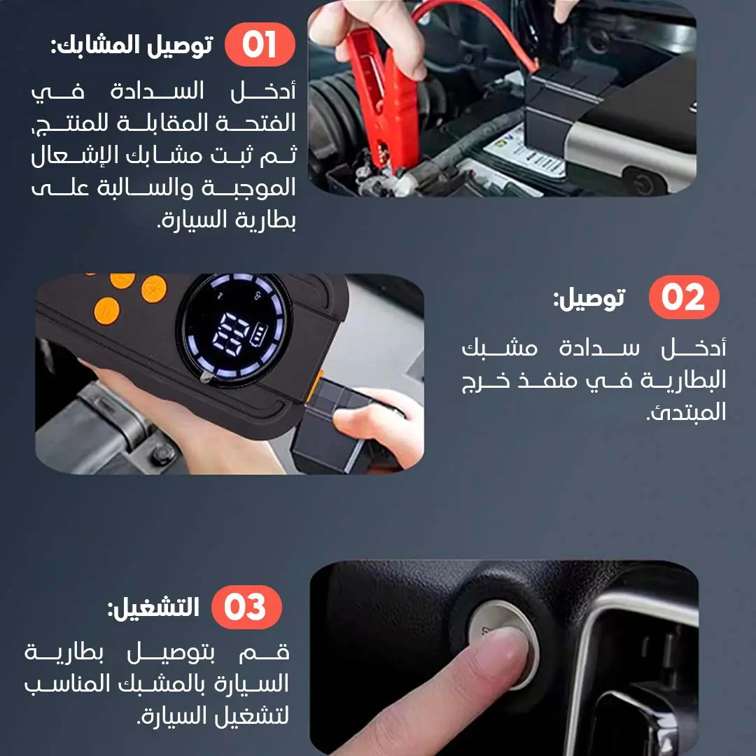 يمكن استخدامه كجهاز تشغيل بطارية السيارة.