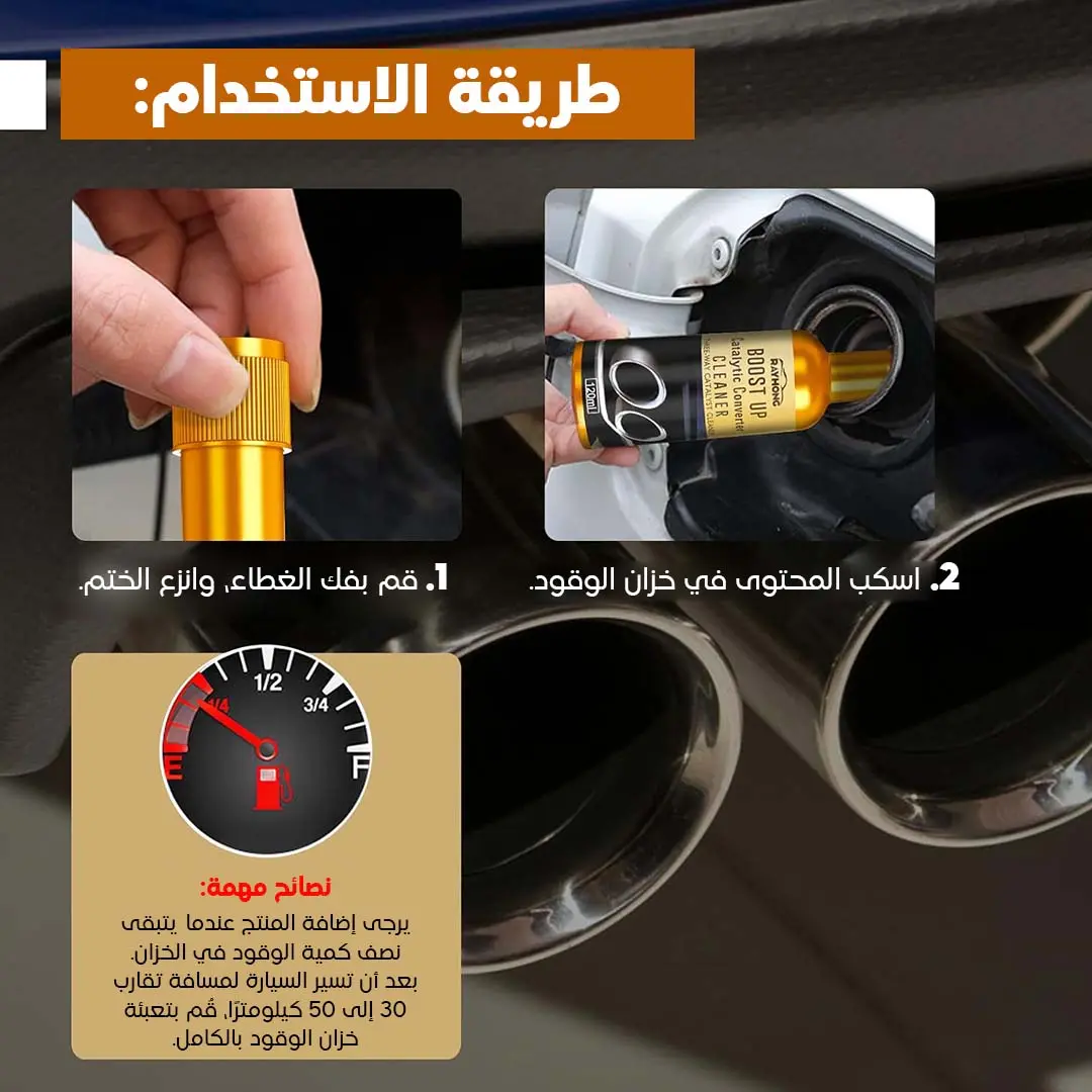 سهل التنظيف: فقط اسكبه فيه ولا حاجة لإزالة المحول الحفاز. لمركبات البنزين والديزل والوقود المرن؛ لا يغير الوقود. غير مناسب لمحركات ثنائية الشوط أو محركات الهواء الزيتي.