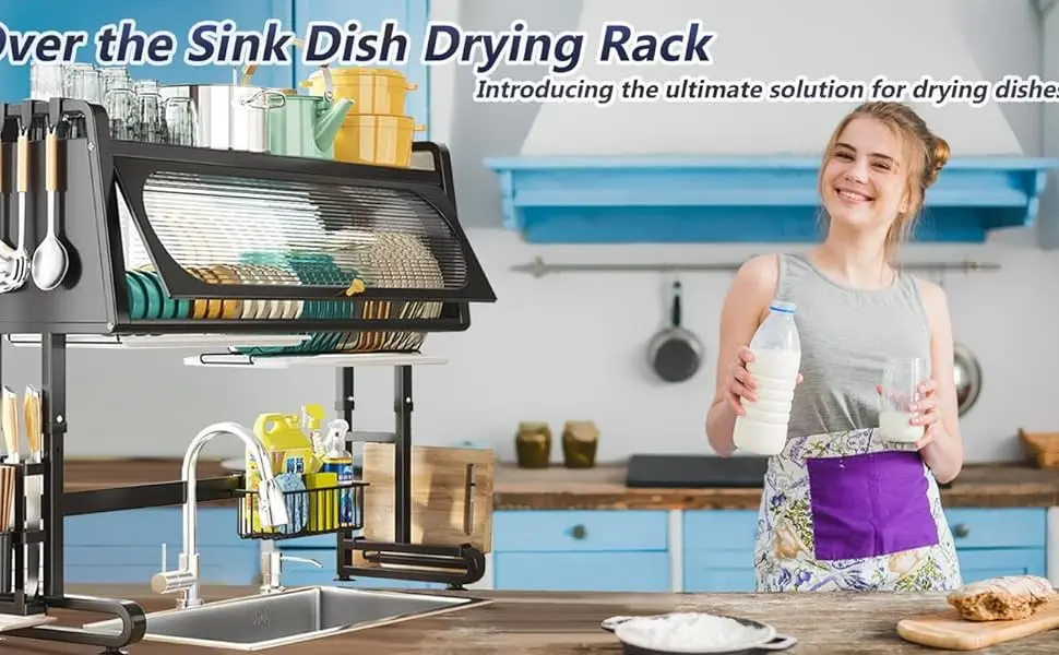 تصميم متعدد الاستخدامات يُركّب فوق الأحواض: يتناسب رف تجفيف الأطباق هذا مع معظم الأحواض القياسية، مما يوفر مساحة على سطح العمل مع الحفاظ على الأطباق والأواني منظمة.