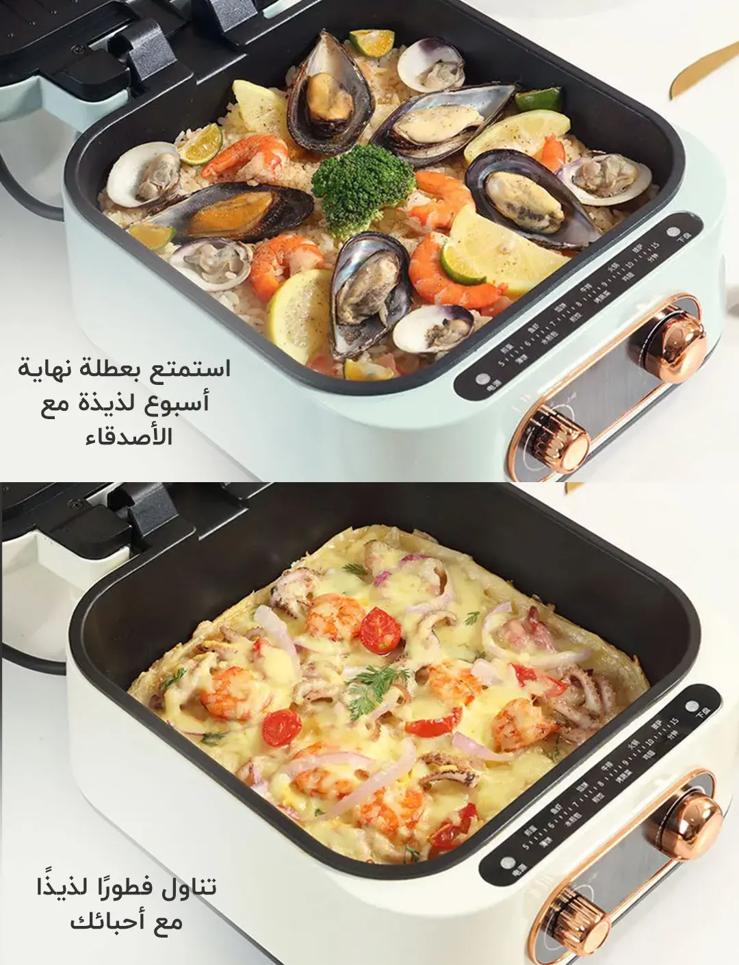 · متعدد الوظائف قم بإعداد حصص فردية للبيض والبسكويت والفطائر والجبن المشوي دون الحاجة إلى أواني / مقالي متعددة.