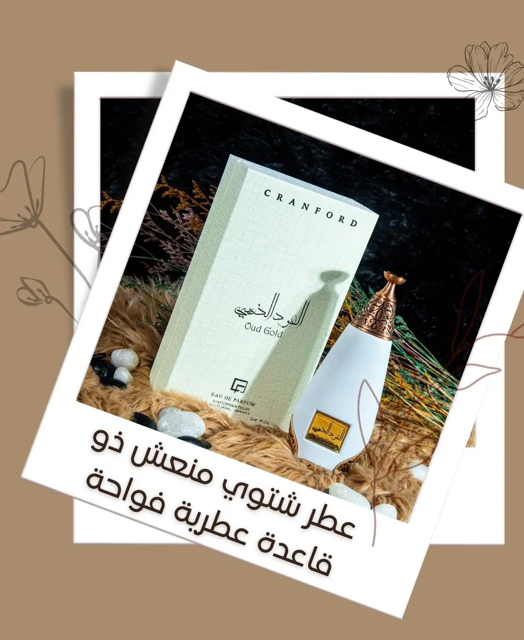 "عود الذهب: جاذبية حسية في زجاجة. يلتقي العود الفاخر مع الذهب الفاخر للحصول على رائحة لا تُنسى. احتضن هذا المزيج المتناغم بين التقليد والحداثة الذي ينضح بالأناقة والسحر."